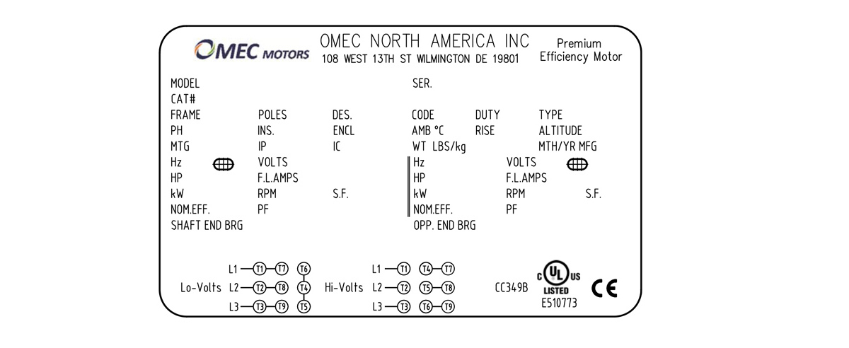 | NEMA TEFC 低壓電機 OMN 145T-4 1.1kW 208-230/460V T |